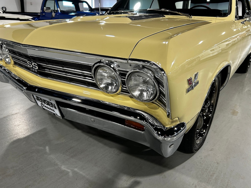 Amazing ……an appropriate word to describe our 396 powered 1967 Chevelle, it has undergone a comprehensive nut and bolt restoration, and regardless of where you look, the car shows in “like new” condition. Butternut Yellow paint with a contrasting vinyl top, correct bucket seat interior, and riding on a set of black chrome Coys five spoke wheels wrapped in Vercelli rubber. 396 CI power and mated to a GM Powerglide automatic transmission with power steering, power brakes, disk in the front, and all kinds of mechanical goodies as well, including Raptor mufflers, serpentine accessory drive kit, Dakota Digital instrument cluster, custom auto sound stereo, tubular front control arms, and more. Checks all the right boxes, rust free and turnkey condition. You’d be hard-pressed to find one nicer.!