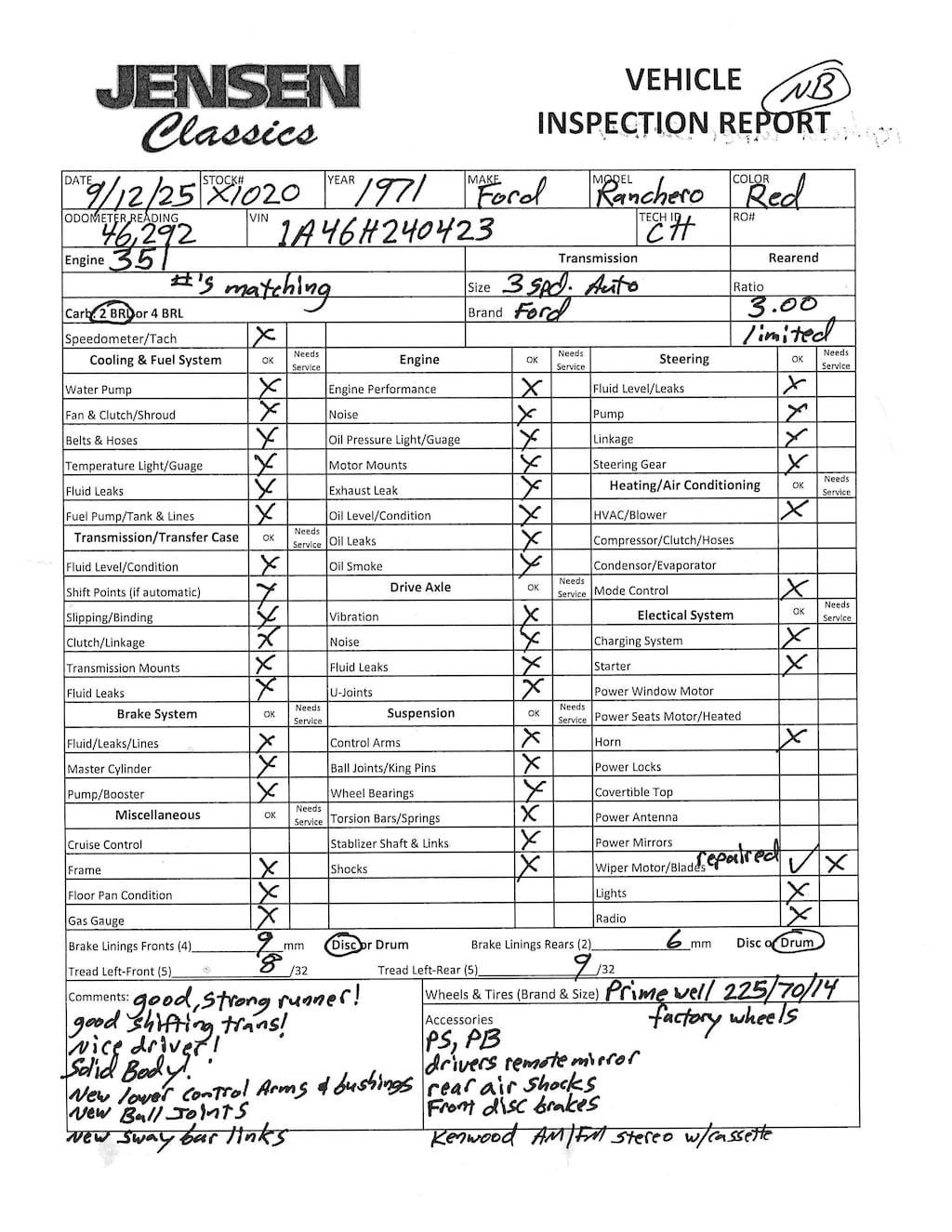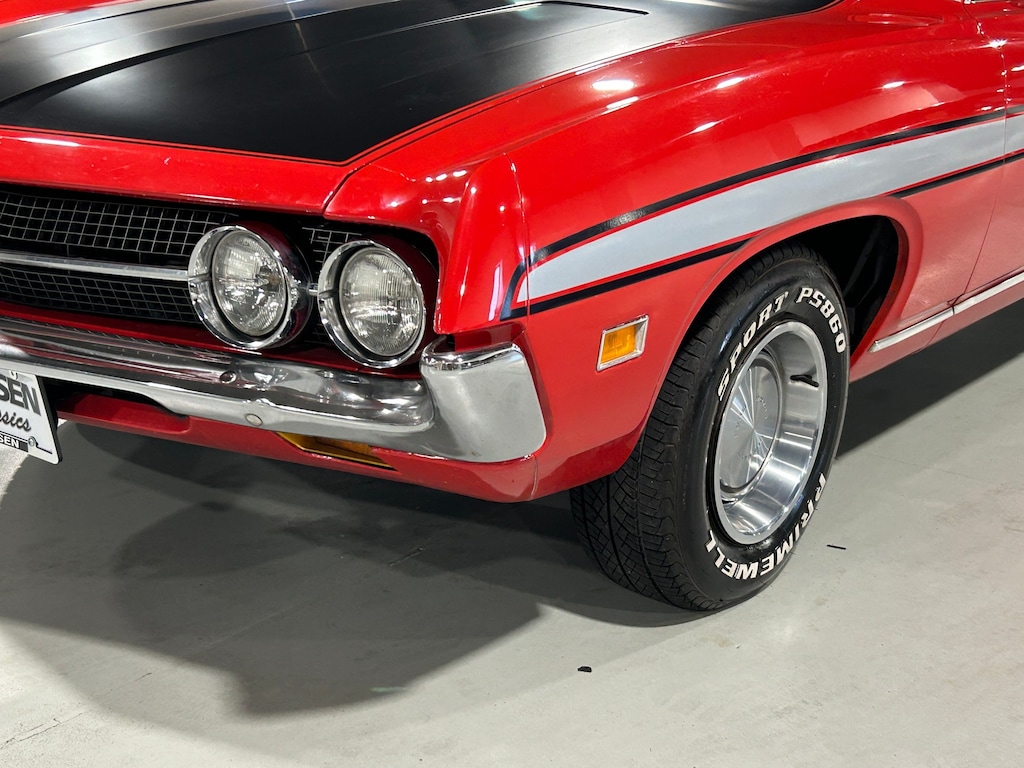 Laser straight and rust free, this 1971 Ranchero is exceptional. See the attached Marti report which indicates the Ranchero was produced in Atlanta Georgia on April 23, 1971, four days ahead of schedule. Currently it is as produced in 1971 as specified and detailed on the Marti report with the exception of the radio and the tires. Numbers matching Cleveland 351 V-8, C4 select shift automatic transmission, 3.00 conventional rear end with limited slip, power steering, power front disc brakes, color keyed racing mirrors, tendon glass, OEM styled wheels with trim rings, electric clock, Kenwood stereo, and more. Bright red paint # 3560 – A, Red spectrum stripe cloth and vinyl interior, special value package, two-tone hood, black vinyl top. It's just really hard to fault this truck cosmetically or mechanically.