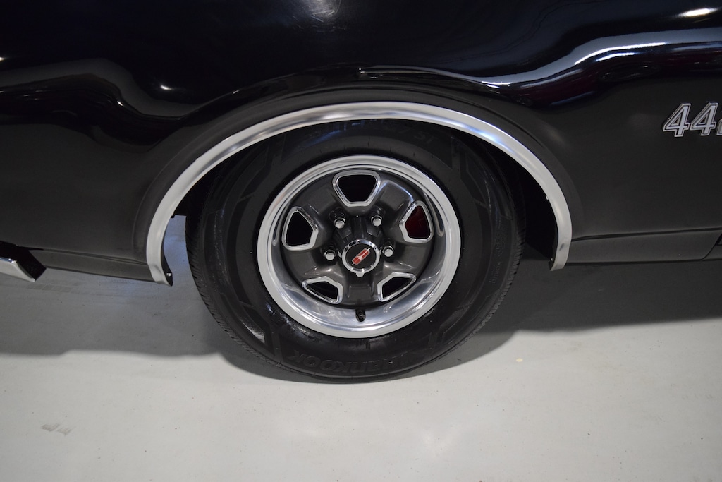 This 1969 olds 442 was purchased new at Jappy Dickson Cadillac – Oldsmobile Inc.by Carl Archer from Palmyra, Missouri on June 18, 1969. Selling price of $3846.58, traded a 1965 Buick with a trade allowance of $1746.58 and paid a trade difference of $2100. All kinds of original documentation including purchase agreement, application for Missouri title, two build sheets, original owner’s manual as well as the Oldsmobile Protect-O-Plate, owner’s manual jacket, and insurance certificate. NUMBERS MATCHING 400 CI V-8, NUMBERS MATCHING GM TH400 automatic transmission, power steering, power brakes, disc in the front drum and the rear...... drives as good as it looks. Data plate info states paint #10- Ebony black, Trim #935 Red. New custom auto sound stereo (original radio is included), riding on a set of restored original factory OEM styled wheels and new tires.